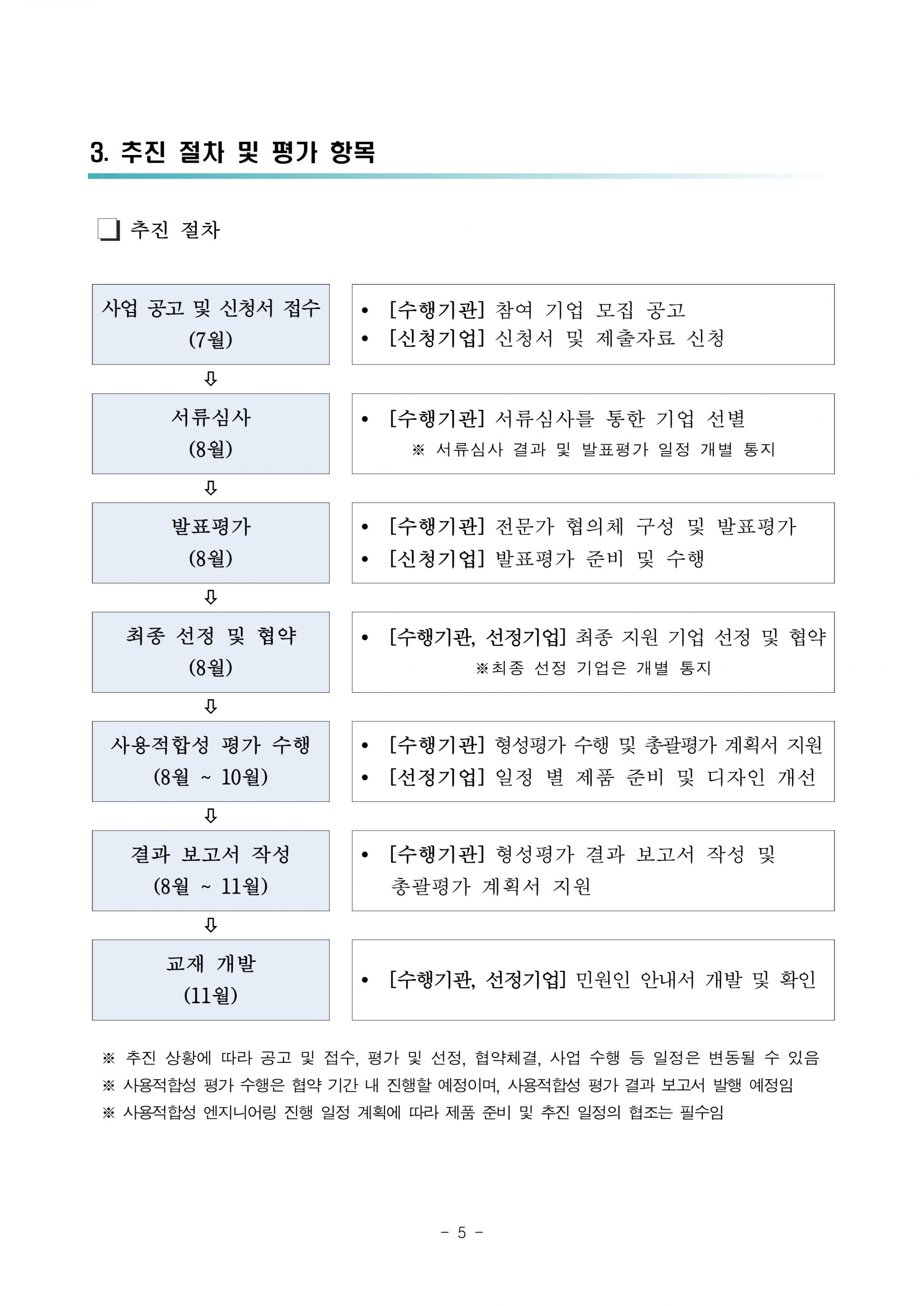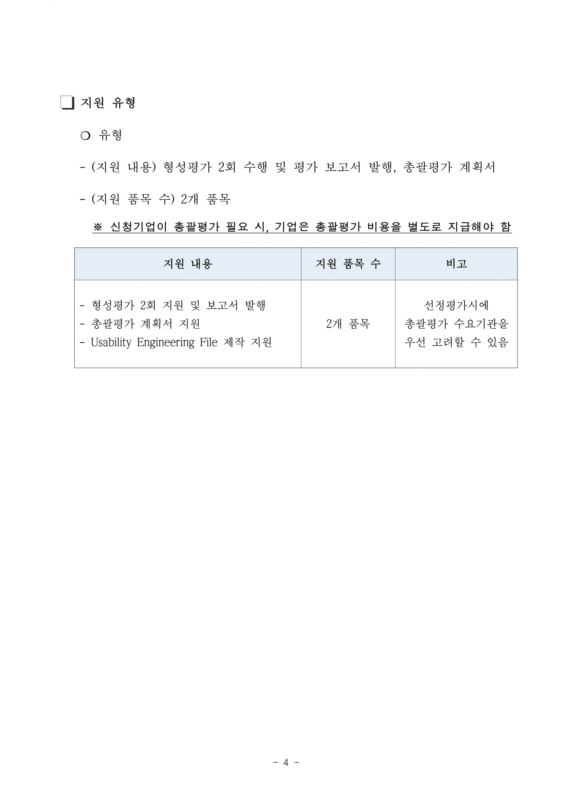 - (지원 내용) 형성평가 2회 수행 및 평가 보고서 발행, 총괄평가 계획서