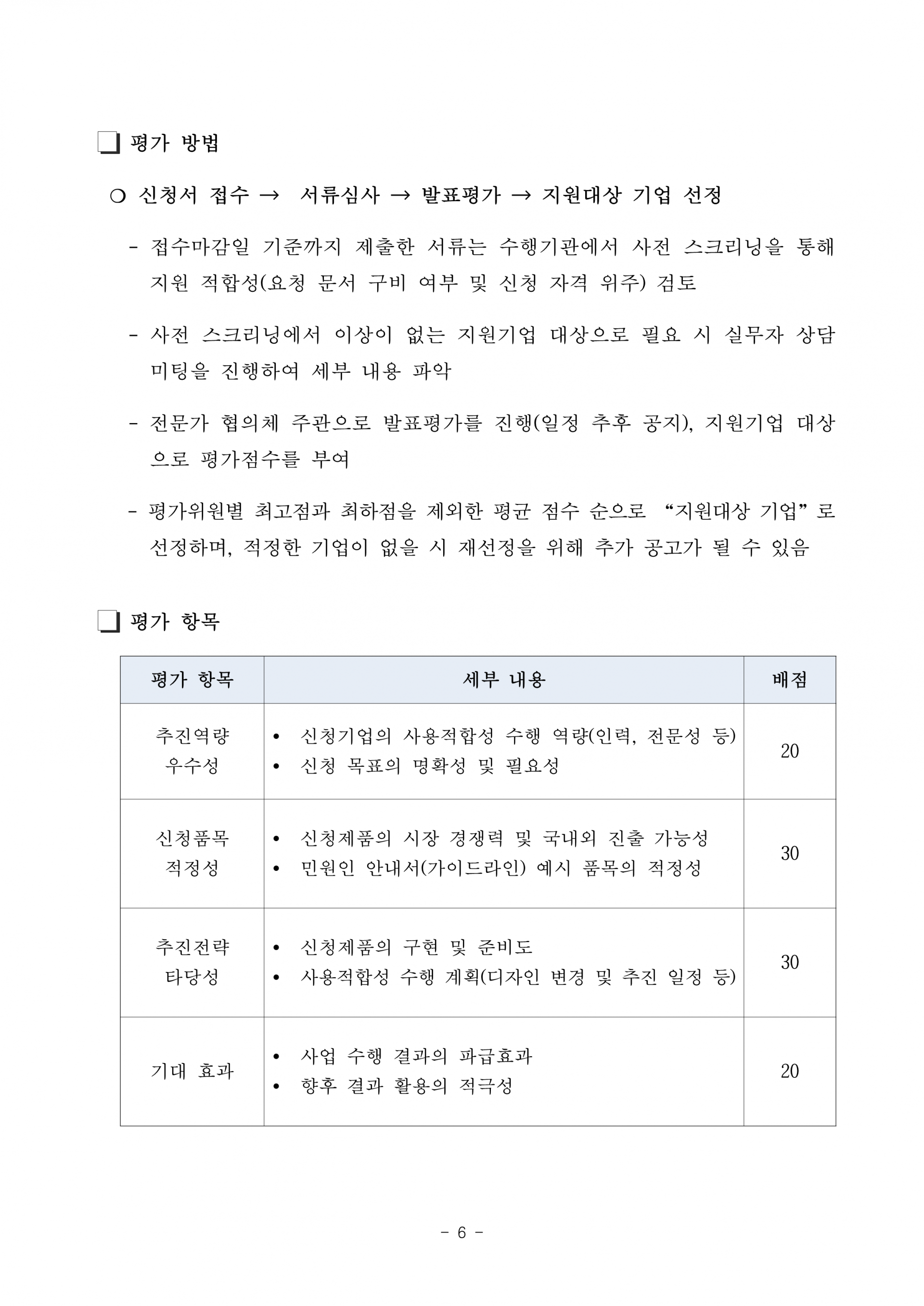 - (지원 품목 수) 2개 품목
