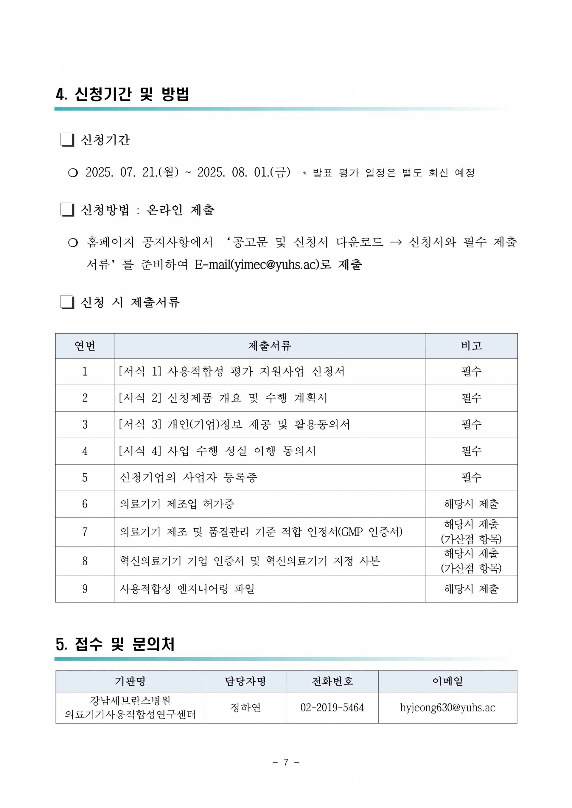 - 신청서 및 필수 제출서류 준비하여 yimec@yuhs.ac 이메일 제출