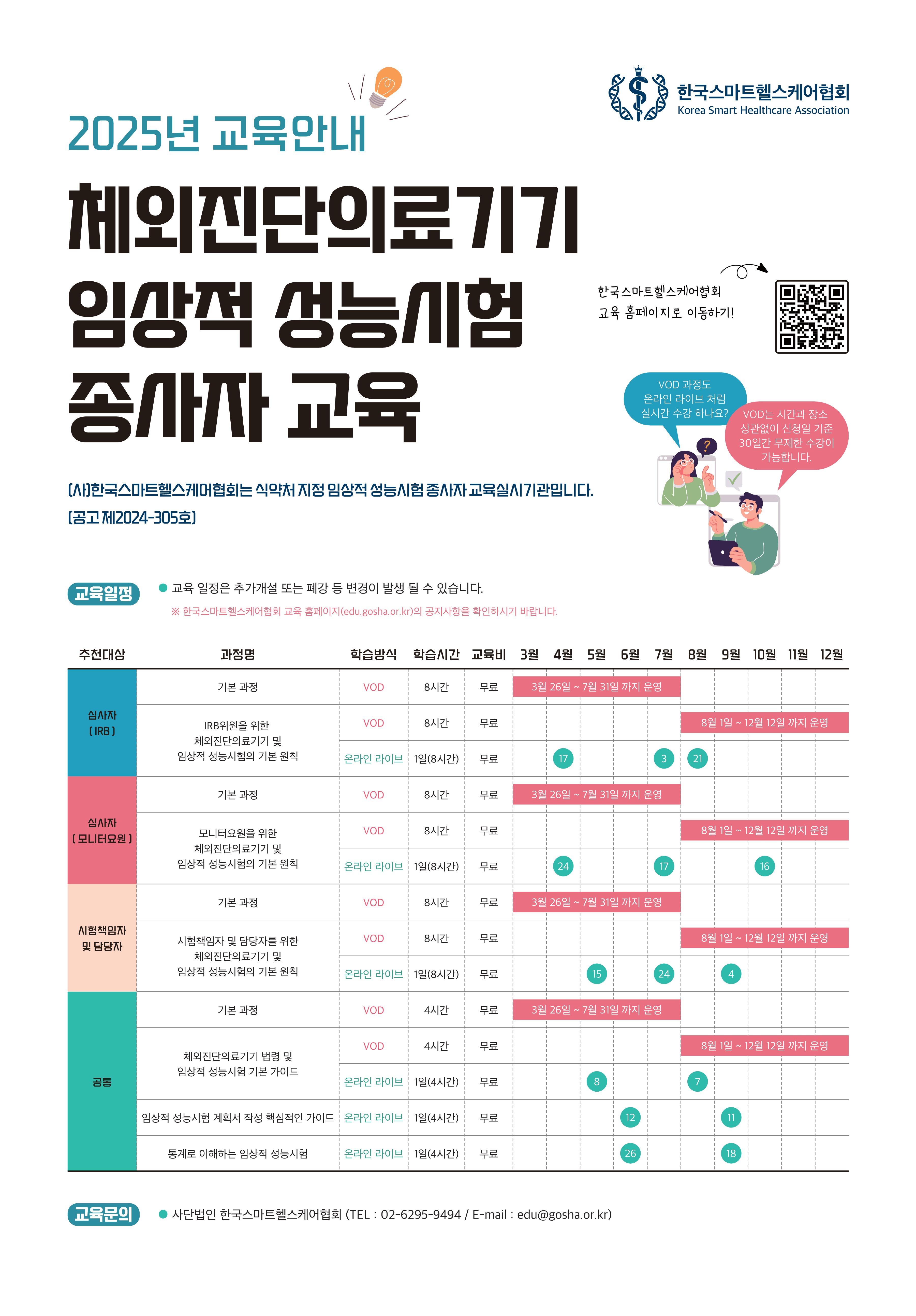 이에 따라 2025년 임상적 성능시험 종사자 교육 일정 및 신청 방법을 아래와 같이 안내드리오니 많은 관심 부탁드립니다.