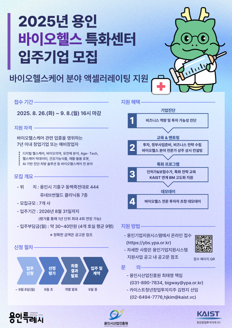 또한 KAIST 투자지주는 팁스(TIPS), 딥테크팁스(Deep Tech TIPS), 스케일업팁스(Scale-up TIPS) 운영사로서 입주기업의 투자 검토를 가장 먼저 진행하며, 간접투자 연계 또한 적극적으로 지원할 예정입니다. (운용자산 AUM 400억 원 이상)