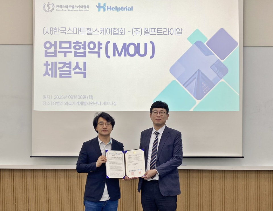 주식회사 헬프트라이알(대표 정영호)은 9월 8일 (사)한국스마트헬스케어협회와 디지털의료제품 규제지원센터 운영 및 공동 협력을 위한 업무협약(MOU)을 체결식을 진행했다고 9일 밝혔다.